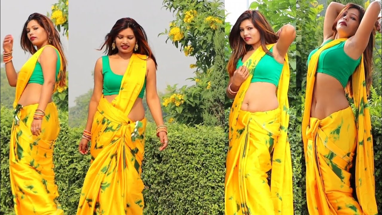 Saree Fashion Beauty full yellow Saree Model Pinky New Hair Style